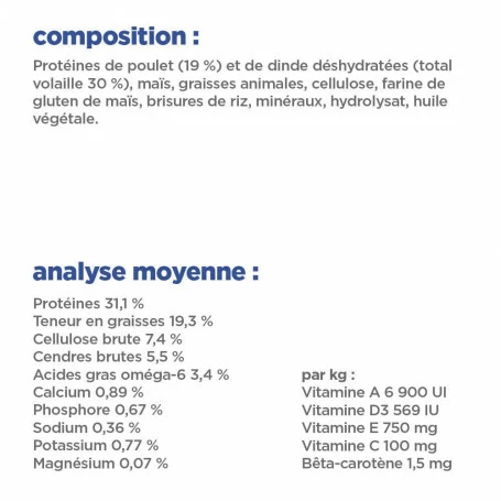 - Santu00e9 de la peau et du pelage: favorisent une peau et un pelageu00a0sains pour des cu00e2lins extra doux, avec des acides gras Omu00e9ga-6 nourrissants et des vitamines E