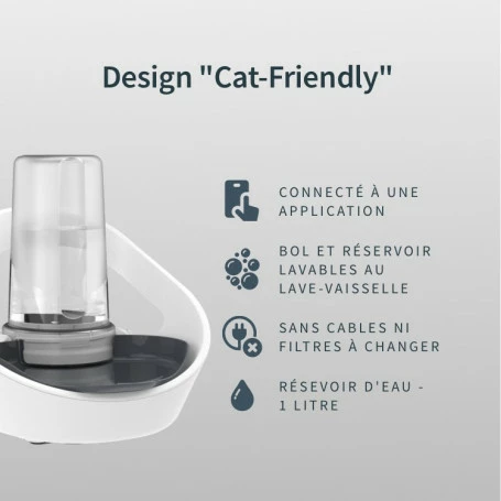 - Son design Cat Friendly offre un bol large et peu profond pru00e9sentant l’eau d’une maniu00e8re plus visible et plus attrayante pour votre animal.