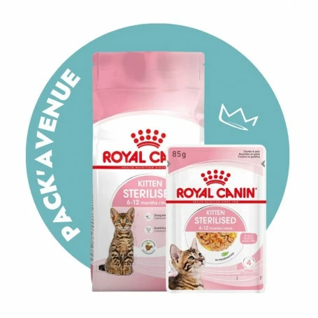 Du00e9couvrez le Pack Royal Canin de croquettes Cat Kitten Sterilised Royal Canin avec des sachets repas conu00e7u pour votre chat de 6 u00e0 12 mois.