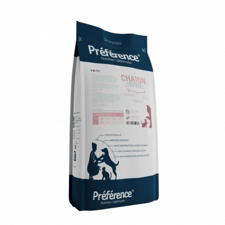 n ","attr":{"id":"","class":""},"moduleName":"totcustomfields"}],"allow_oosp":0,"category":"alimentation-premium","category_name":"Alimentation Premium","link":"https://www.vetoavenue.fr/80714-preference-chaton.html","attribute_price":0,"price_tax_exc":20.94,"price_without_reduction":25.128,"reduction":0,"specific_prices":false,"quantity":99,"quantity_all_versions":99,"id_image":"fr-default","features":[{"name":"Groupe Espu00e8ces","value":"Chats","id_feature":"1","position":"0"},{"name":"Espu00e8ces","value":"Chats","id_feature":"2","position":"1"},{"name":"Type de produits","value":"Alimentation","id_feature":"3","position":"2"},{"name":"Type d’alimentation","value":"Physiologique","id_feature":"4","position":"3"},{"name":"Objectifs Santu00e9","value":"Sensibilitu00e9 digestive","id_feature":"6","position":"5"},{"name":"Objectifs Santu00e9","value":"Gestation et lactation","id_feature":"6","position":"5"},{"name":"Objectifs Santu00e9","value":"Pru00e9vention urinaire","id_feature":"6","position":"5"},{"name":"Objectifs Santu00e9","value":"Croissance","id_feature":"6","position":"5"},{"name":"Age","value":"Junior","id_feature":"63","position":"8"},{"name":"Nature","value":"Sec","id_feature":"11","position":"10"},{"name":"Caractu00e9ristiques","value":"Castru00e9/stu00e9rilisu00e9","id_feature":"13","position":"12"},{"name":"Conditionnement","value":"Croquettes","id_feature":"16","position":"15"},{"name":"Saveur","value":"Volaille","id_feature":"71","position":"16"},{"name":"Gamme","value":"Pru00e9fu00e9rence","id_feature":"18","position":"17"},{"name":"Fournisseur","value":"SOFIVET","id_feature":"20","position":"18"},{"name":"Valeur u00e9nergu00e9tique (Kcal/100g)","value":"390","id_feature":"72","position":"19"}],"attachments":[],"virtual":0,"pack":0,"packItems":[],"nopackprice":0,"customization_required":false,"attributes":{"5":{"id_attribute":"11044","id_attribute_group":"5","name":"Sac de 3 kg","group":"Pru00e9sentation","reference":"3376630001104","ean13":"3376630001104","isbn":"","upc":"337663000110","mpn":""}},"rate":20,"tax_name":"TVA FR 20%","ecotax_rate":0,"unit_price":"","customizations":{"fields":[]},"id_customization":0,"is_customizable":false,"show_quantities":true,"quantity_label":"Produits","quantity_discounts":[],"customer_group_discount":0,"images":[{"bySize":{"cart_default":{"url":"https://www.vetoavenue.fr/158856-cart_default/preference-chaton.jpg","width":90,"height":90},"small_default":{"url":"https://www.vetoavenue.fr/158856-small_default/preference-chaton.jpg","width":90,"height":90},"home_default":{"url":"https://www.vetoavenue.fr/158856-home_default/preference-chaton.jpg","width":278,"height":278},"medium_default":{"url":"https://www.vetoavenue.fr/158856-medium_default/preference-chaton.jpg","width":455,"height":455},"large_default":{"url":"https://www.vetoavenue.fr/158856-large_default/preference-chaton.jpg","width":800,"height":800}},"small":{"url":"https://www.vetoavenue.fr/158856-cart_default/preference-chaton.jpg","width":90,"height":90},"medium":{"url":"https://www.vetoavenue.fr/158856-home_default/preference-chaton.jpg","width":278,"height":278},"large":{"url":"https://www.vetoavenue.fr/158856-large_default/preference-chaton.jpg","width":800,"height":800},"legend":"","id_image":"158856","cover":"1","position":"1","associatedVariants":[]}],"cover":{"bySize":{"cart_default":{"url":"https://www.vetoavenue.fr/158856-cart_default/preference-chaton.jpg","width":90,"height":90},"small_default":{"url":"https://www.vetoavenue.fr/158856-small_default/preference-chaton.jpg","width":90,"height":90},"home_default":{"url":"https://www.vetoavenue.fr/158856-home_default/preference-chaton.jpg","width":278,"height":278},"medium_default":{"url":"https://www.vetoavenue.fr/158856-medium_default/preference-chaton.jpg","width":455,"height":455},"large_default":{"url":"https://www.vetoavenue.fr/158856-large_default/preference-chaton.jpg","width":800,"height":800}},"small":{"url":"https://www.vetoavenue.fr/158856-cart_default/preference-chaton.jpg","width":90,"height":90},"medium":{"url":"https://www.vetoavenue.fr/158856-home_default/preference-chaton.jpg","width":278,"height":278},"large":{"url":"https://www.vetoavenue.fr/158856-large_default/preference-chaton.jpg","width":800,"height":800},"legend":"","id_image":"158856","cover":"1","position":"1","associatedVariants":[]},"has_discount":false,"discount_type":null,"discount_percentage":null,"discount_percentage_absolute":null,"discount_amount":null,"discount_amount_to_display":null,"price_amount":25.13,"unit_price_full":"","show_availability":true,"availability_date":null,"availability_message":"Livraison entre 48h et 72h (hors Corse) ouvru00e9s chez votre vu00e9tu00e9rinaire","availability":"available"} »>