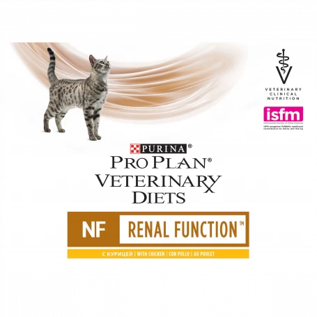 Feline NF Chicken Sachet Repas est un aliment diu00e9tu00e9tique complet pour la prise en charge nutritionnelle de l’Insuffisance Ru00e9nale Chronique et ses complications chez les chats adultes.