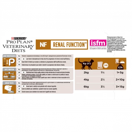 Proposu00e9 en sachet fraicheur 10 X 85g, le Feline NF Chickenu00a0contient des quantitu00e9s limitu00e9es de phosphore, les u00e9tudes ayant montru00e9 que ce minu00e9ral contribuait u00e0 la progression de la maladie.u00a0