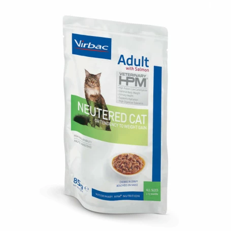Les sachets repas Veterinary HPM Chat Adult Neutered Saumon sont conu00e7us pour couvrir les besoins nutritionnels des chats stu00e9rilisu00e9s u00e0 partir de 1 an et les maintenir en bonne santu00e9.